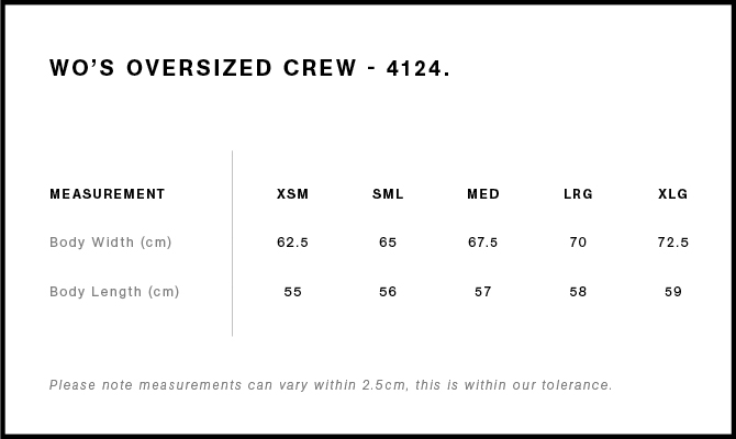 Neck, cuff & hem 2x2 ribbing, preshrunk to minimise shrinkage