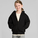 Zip hood, drop shoulder, kangaroo pocket, self-fabric lined hood, no drawcord, YKK zip, sleeve cuff ribbing