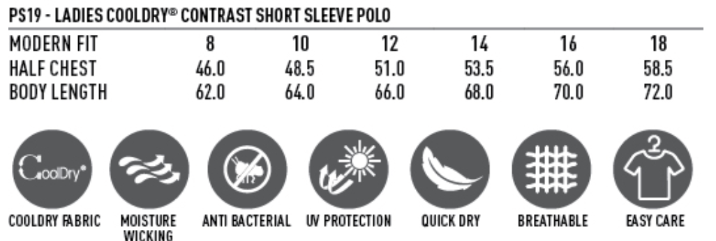 Fabric: CoolDry Mesh 165gsm - 100% Polyester