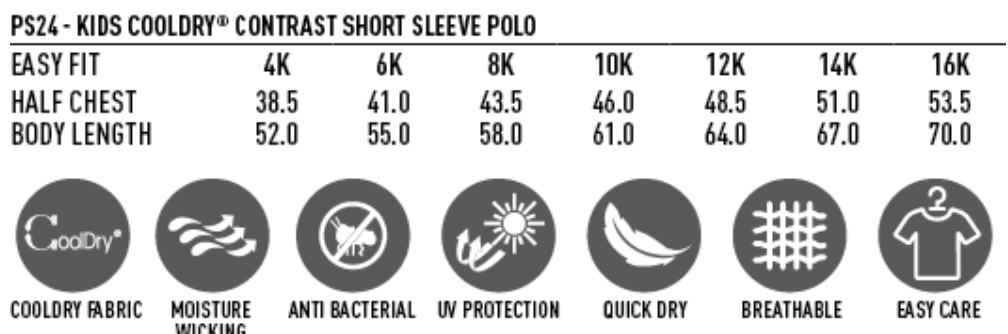 Fabric: CoolDry Mesh 165gsm - 100% Polyester