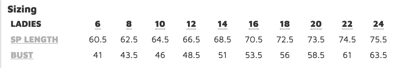 Sizing Details