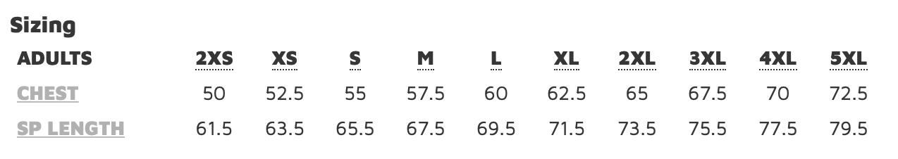 Sizing Details